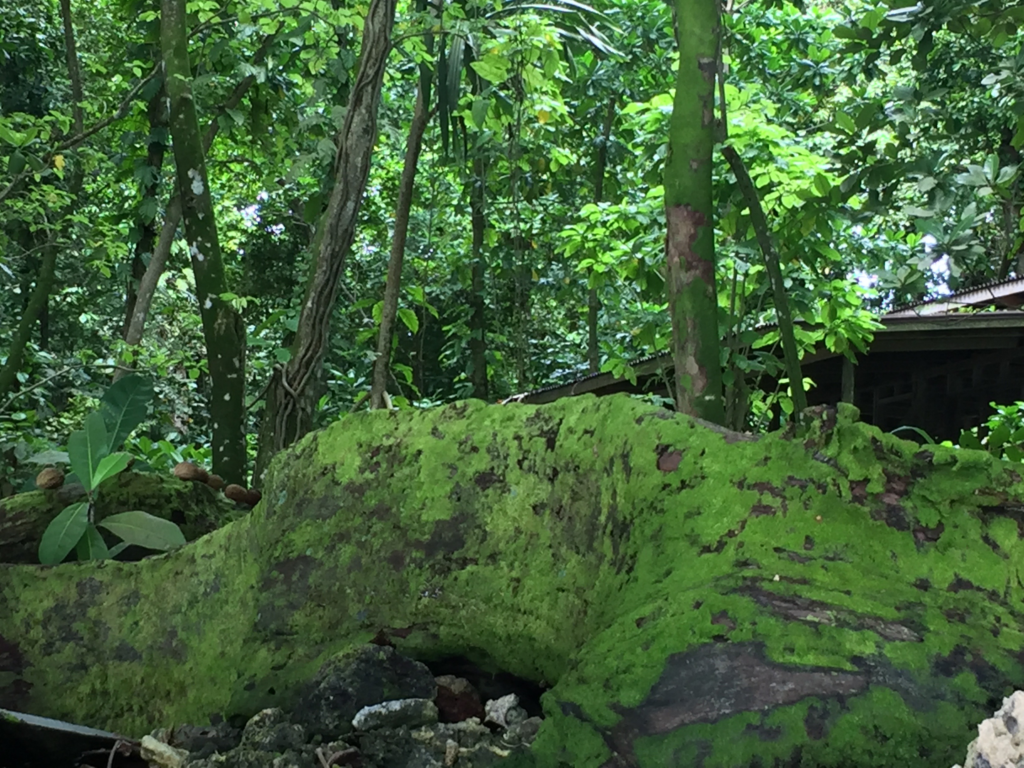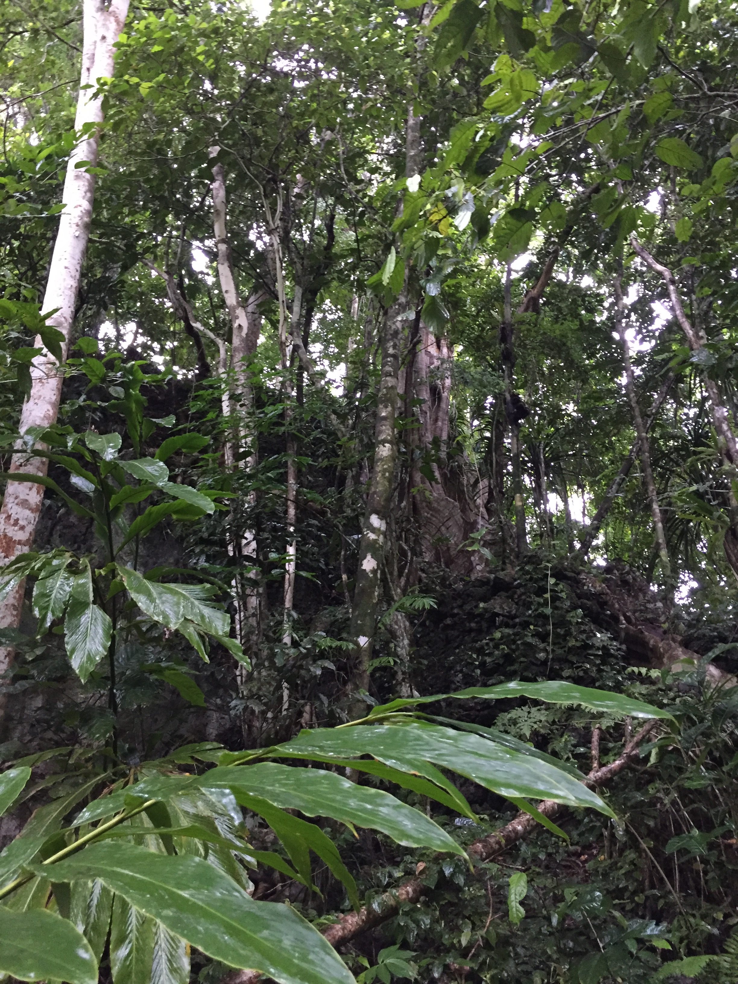 A green wall of jungle leaves –