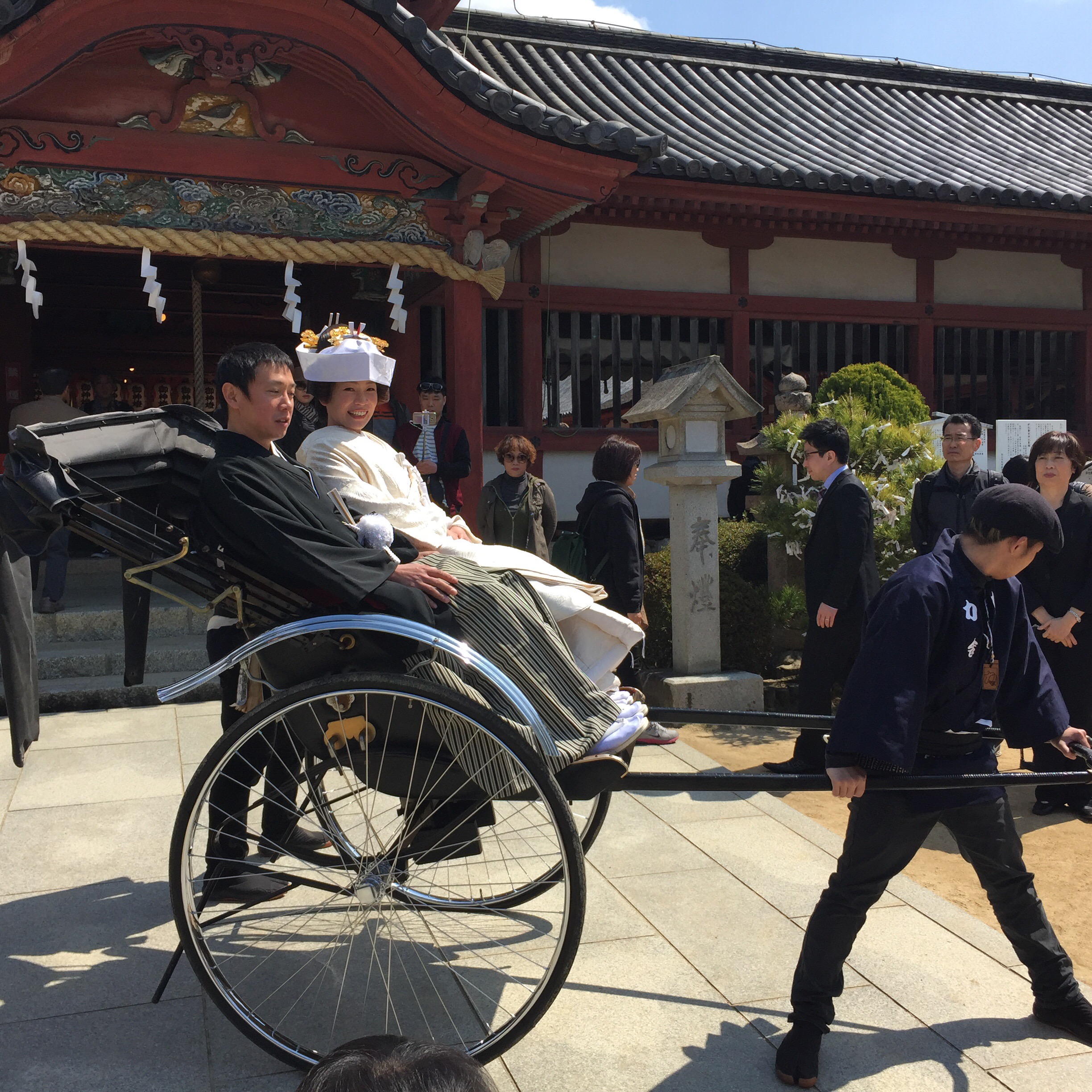 A wedding in a Shinto shrine in Matsuyama city. Weddings are often connected with the Shinto tradition, whereas funerals are done by Buddhist monks.
