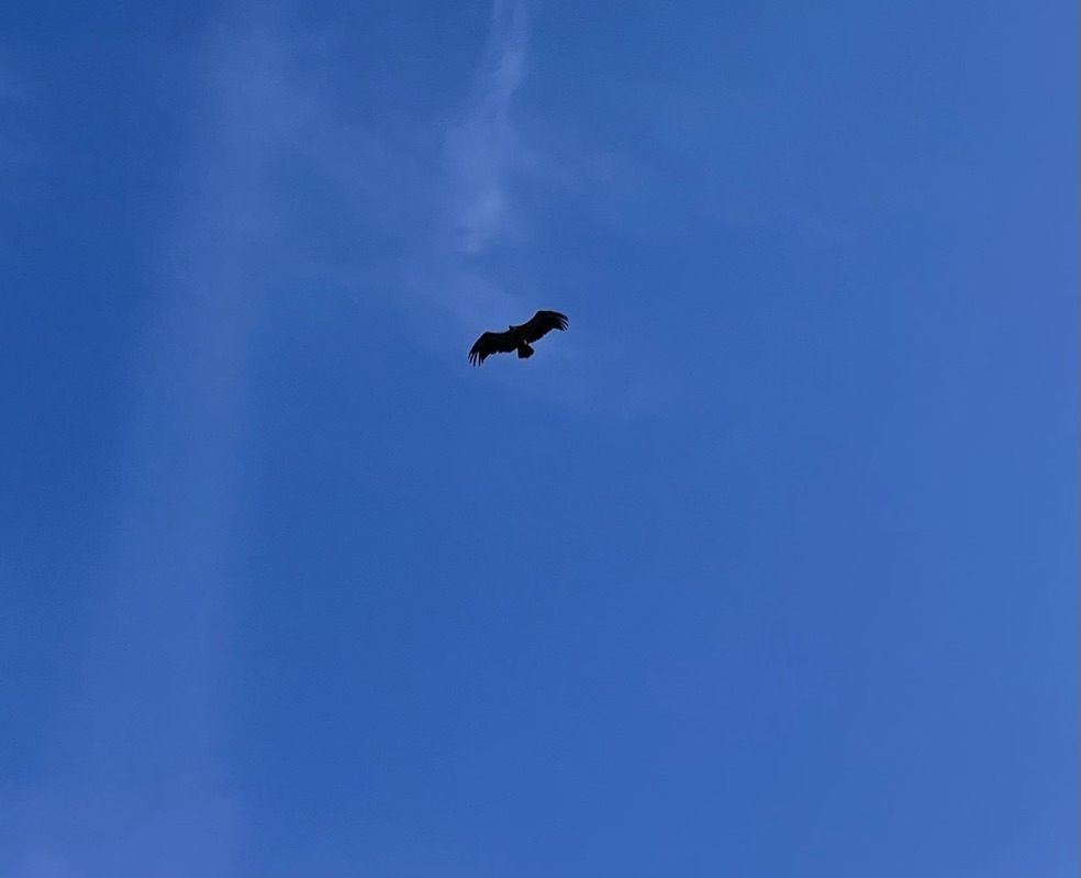 Several miles before the town of Carcarés, I heard a rustle and flapping of wings in the sky. When I looked up, I saw 10-12 vultures floating above me.