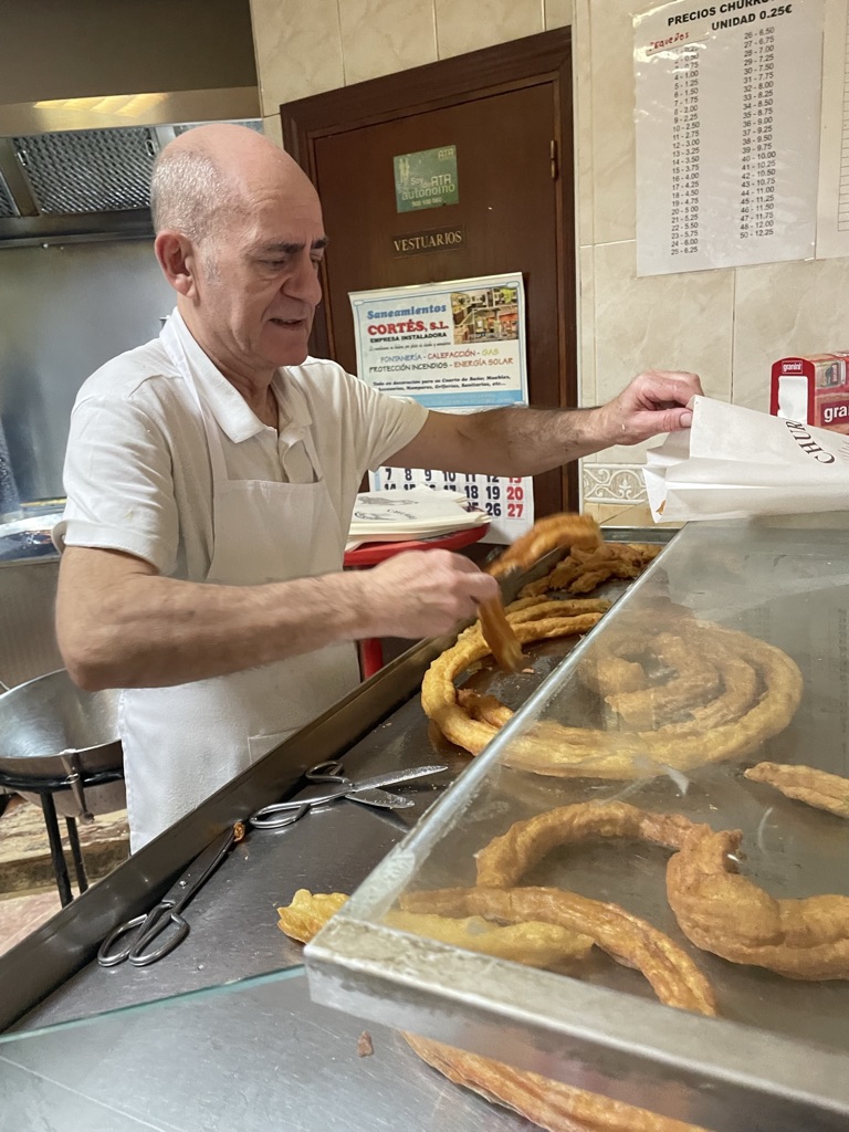The next morning, I had breakfast in the Churreria Ruiz, a place were locals love to have their coffee and hot chocolate with fresh baked Churros. It was rainy outside and I loved siting in the warmth and sipping my té negro with the delicious sweet Churros.